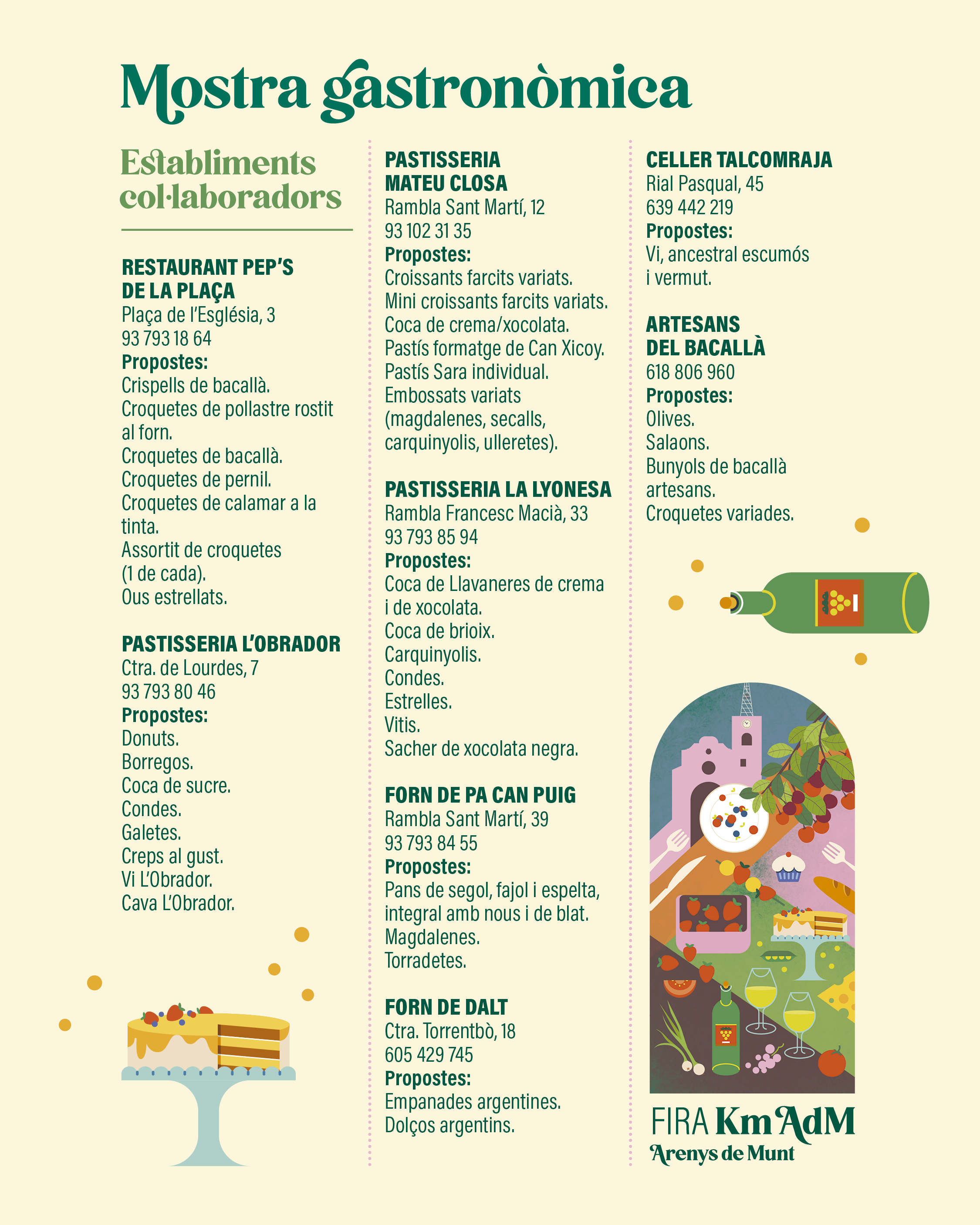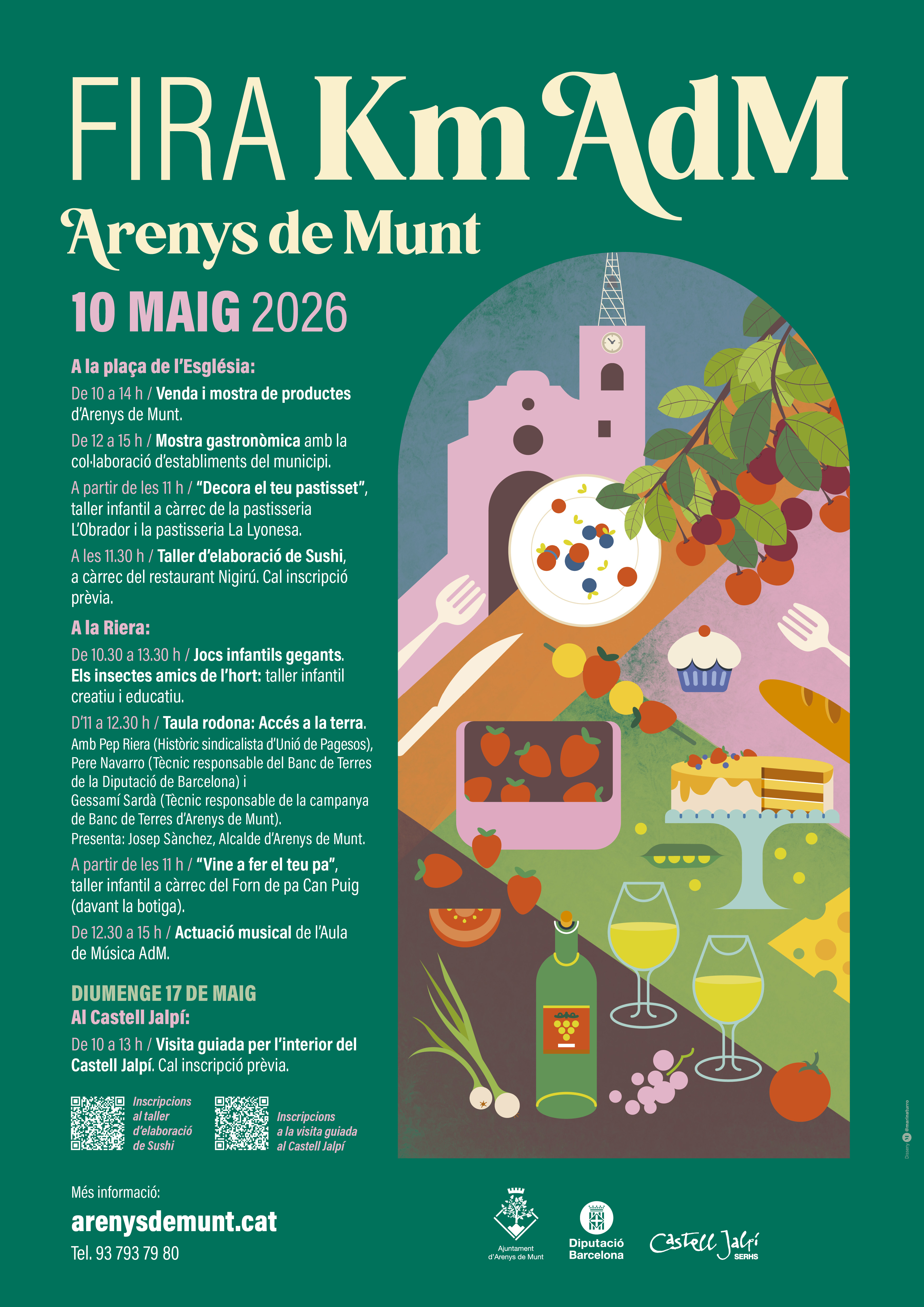 El diumenge 10 de maig, Arenys de Munt celebrarà una nova edició de la Fira Km AdM, una jornada per posar en valor els productes locals , la gastronomia i el territori. L’activitat es concentrarà a la plaça de l’Església i la Riera, i oferirà una combinació de degustacions, venda directa i activitats per a tots els públics.