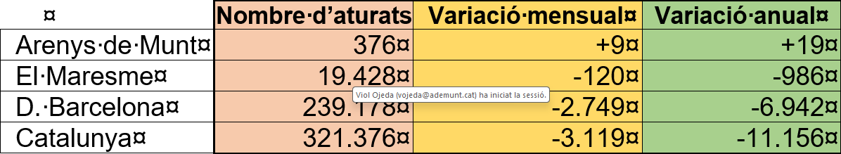 A Catalunya, Barcelona i la comarca les dades d’atur son positives ja que la variació mensual i anual és a la baixa.