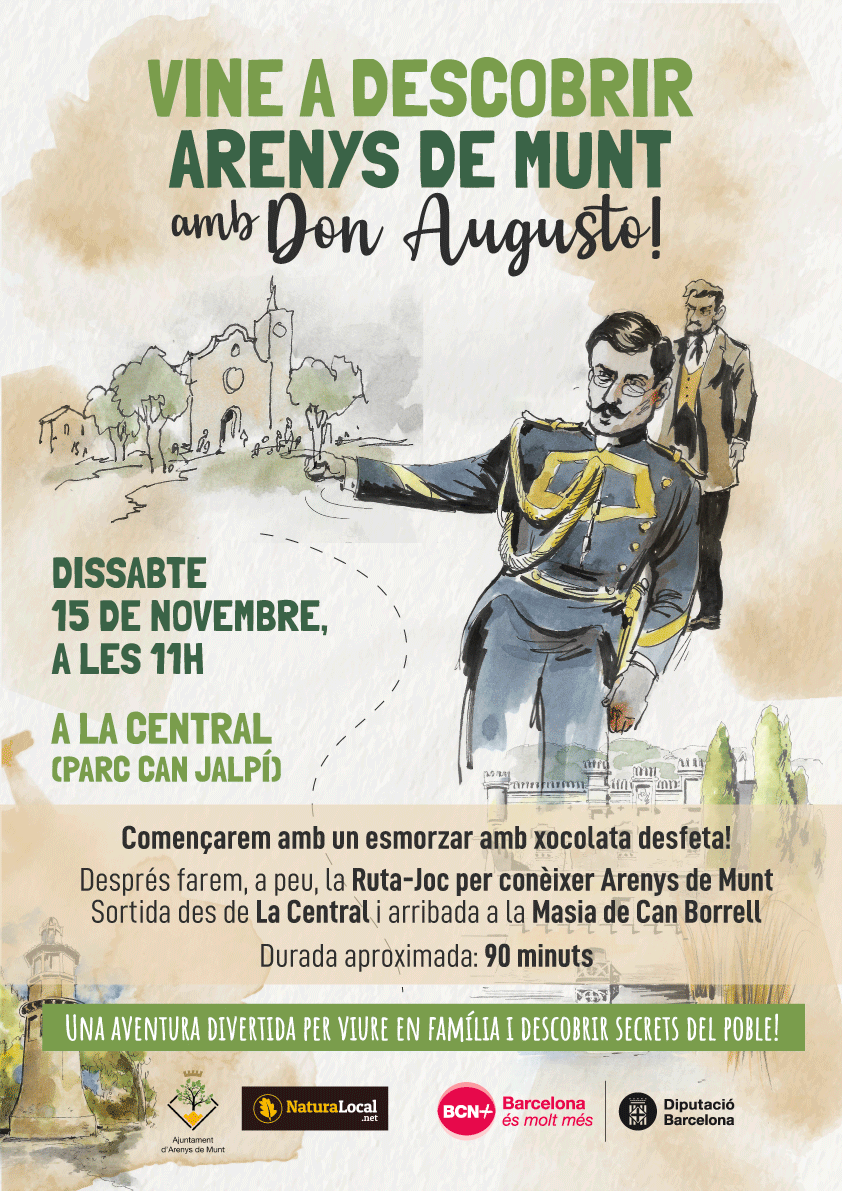 El dissabte 15 de novembre es farà la presentació del la ruta -joc que convida a conèixer el poble d’Arenys de Munt i els seus racons més emblemàtics de la ma del personatge local Don Augusto Borràs i Jalpí.