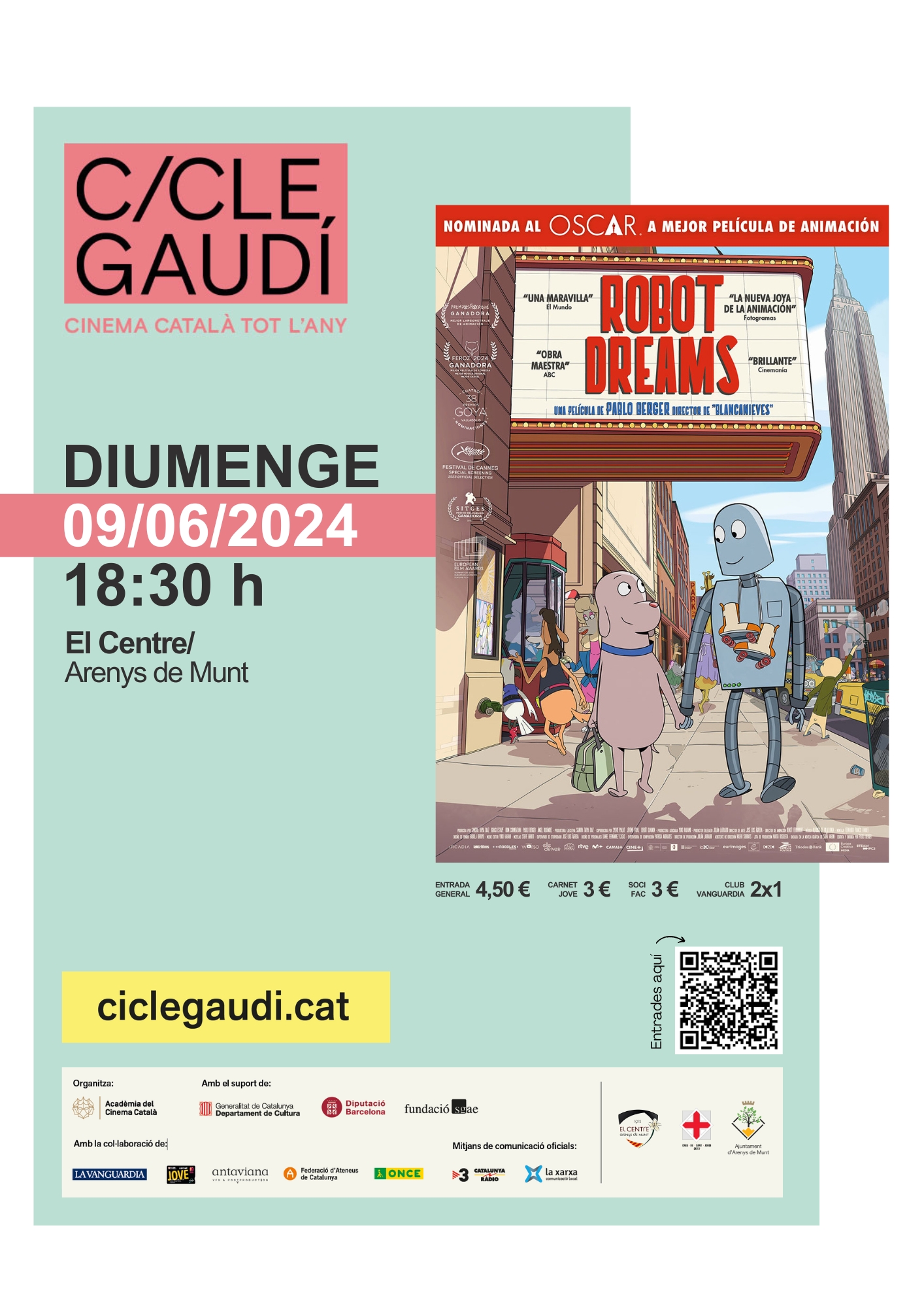 Entrades i més informació: https://centrearenysdemunt.cat/2023/06/19/cinema-cicle-gaudi-robot-dreams/
