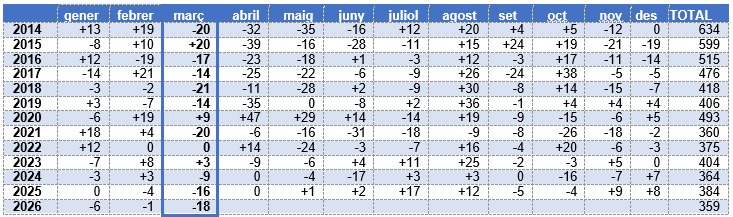 Quadre 1: Variació mensual del nombre de persones aturades des del 2014